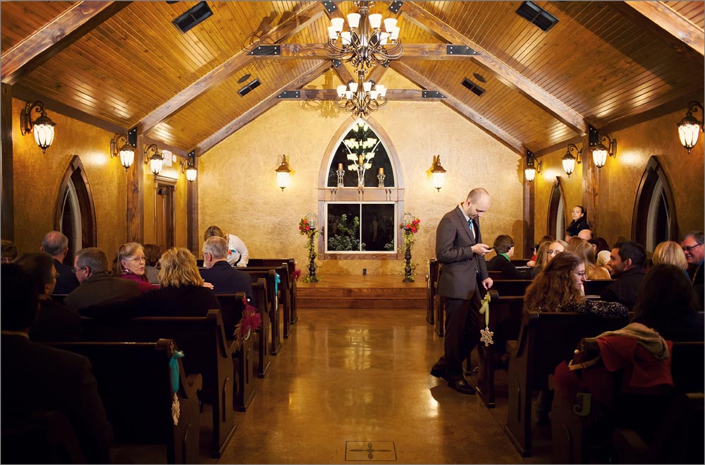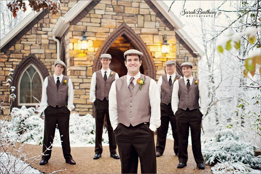 James and Emmalyn were married on December 28 at St. Anthony’s on the Creek in Lowell, Arkansas. A light, snow covered the trees and the chapel, and made the whole evening even more beautiful. One of the things that set their wedding apart from others was the vintage theme they incorporated in the reception decorations. Each table was decorated differently, with unique centerpieces. Following the dinner, James and Emmalyn and their guests turned the reception into a dance party!