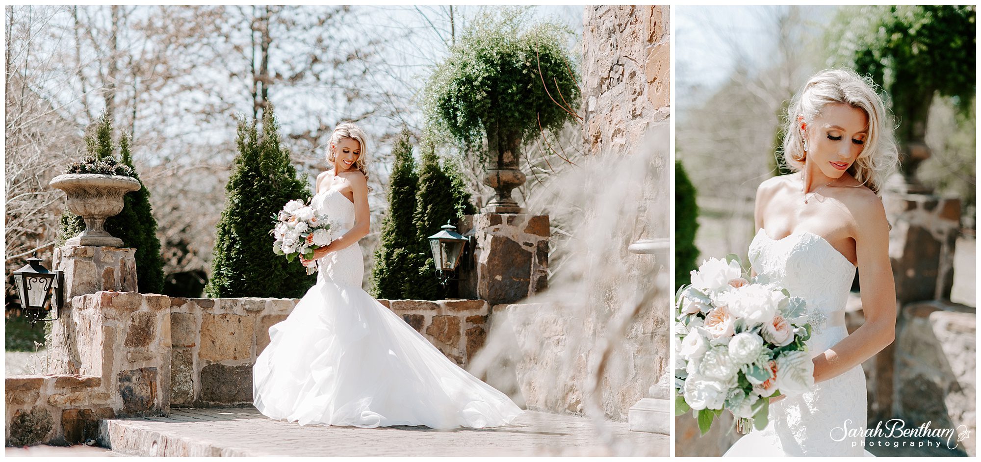 Ashley scheduled some time on her wedding day for a mini bridal session before the first look with Jordy. And on this one day of the year, the Bradford Pear trees lining the grounds of the Stone Chapel bloomed with the most amazing white flowers. It was spectacular.